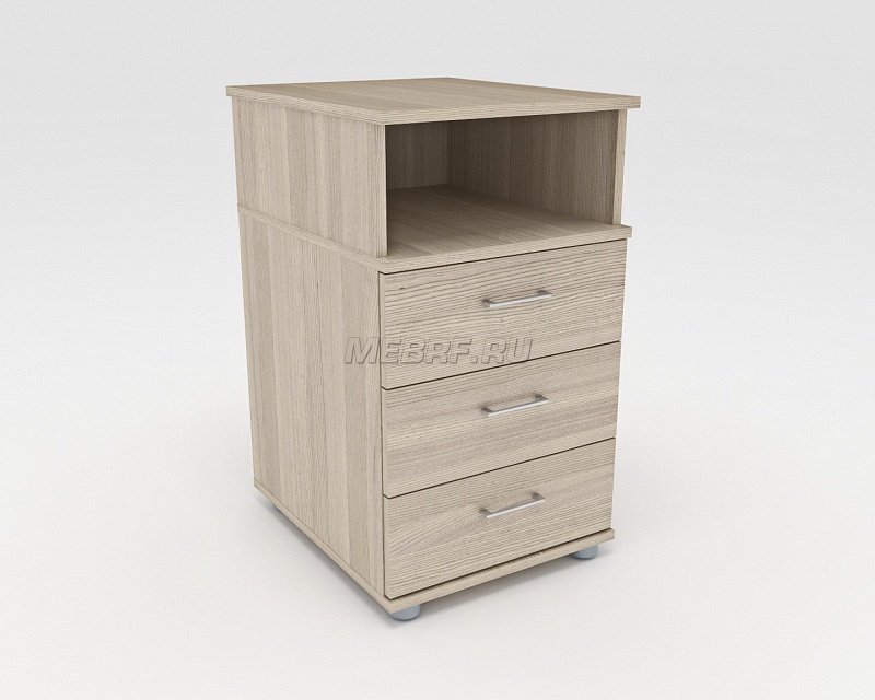 Все изделия изготовлены из ЛДСП  толщиной 16мм. Задняя стенка шкафов - ХДФ белого цвета. Столешницы облицованы противоударной кромкой ПВХ 2 мм. Торцы остальных детелей - кромкой ПВХ 0,4мм. 2 варианта исполнения стекла: стекло прозрачное или стекло прозрачное в профиле МДФ - цвет "алюминиевый металлик". Ручки металлические, цвет - хром матовый. Фурнитура европейских производителей. Применены регулировочные опоры для защиты бока стола. Регулировка столов и приставных тумб по высоте до 15мм.